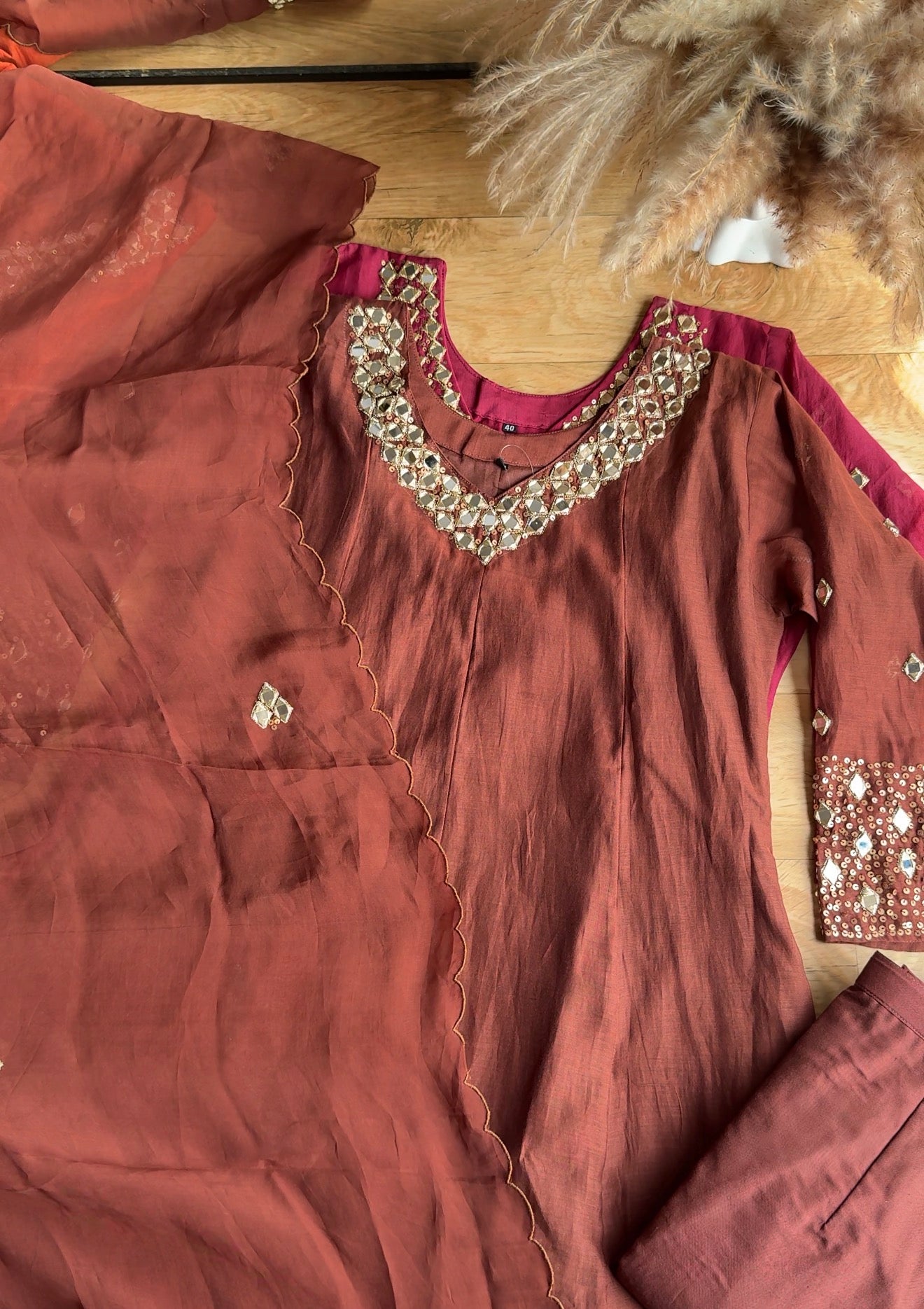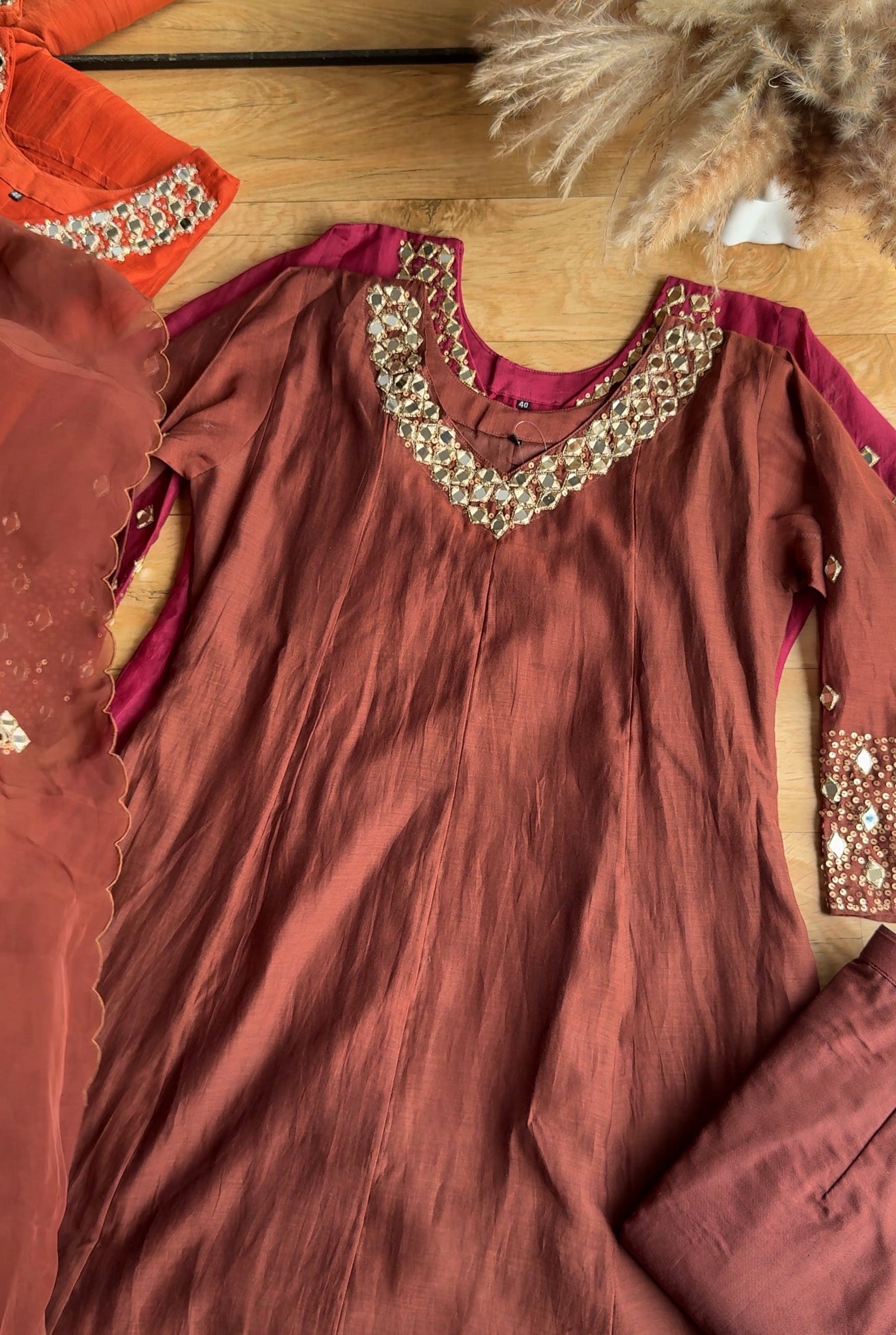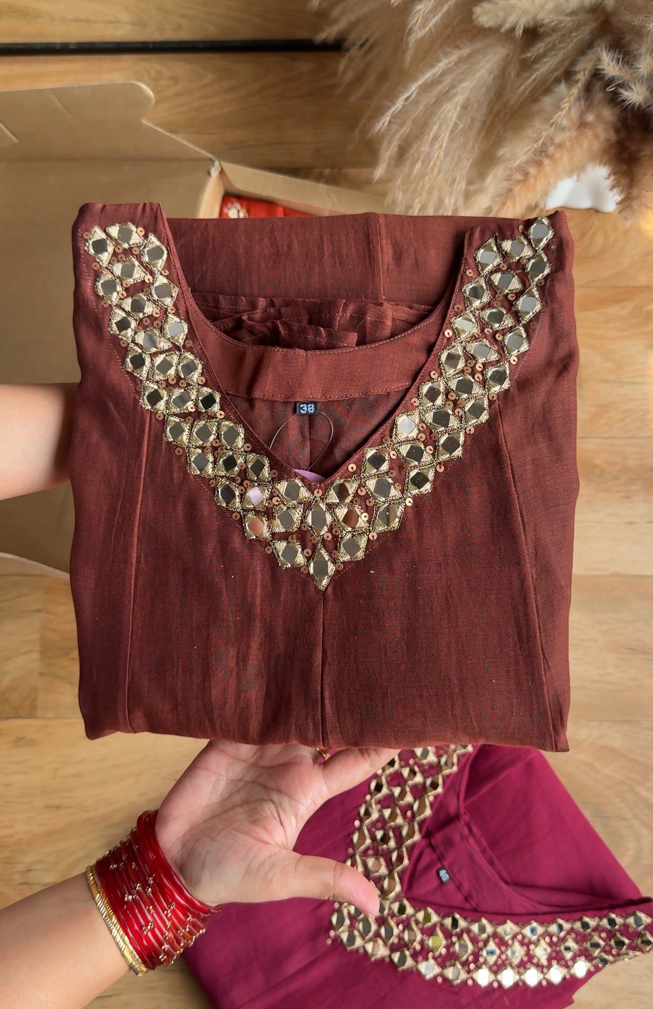 Tanisha V Neck Mirror Work Dress- Brown (Make to Order)
