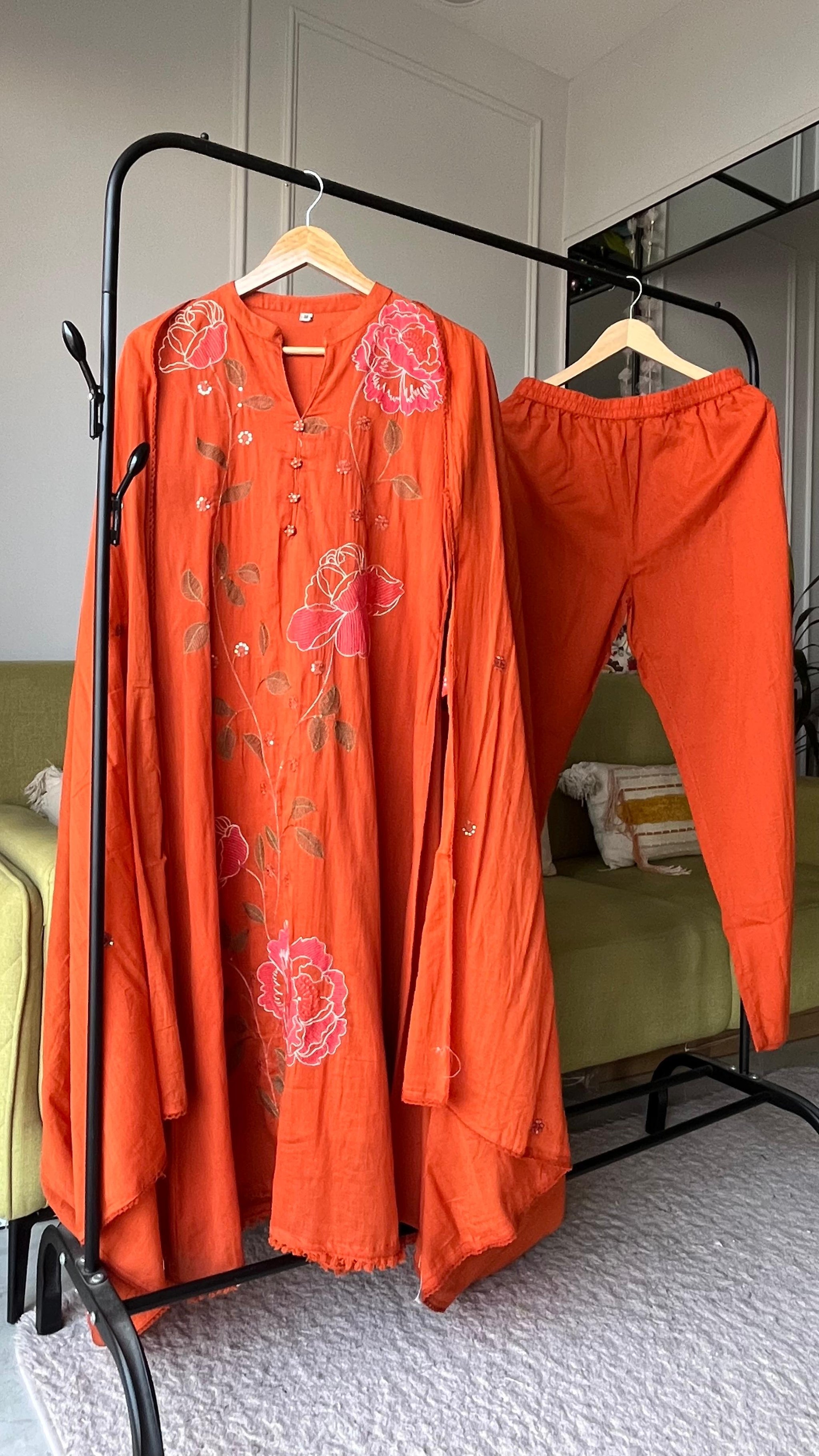 Sejal Embroided Mul Cotton Dress- Rust