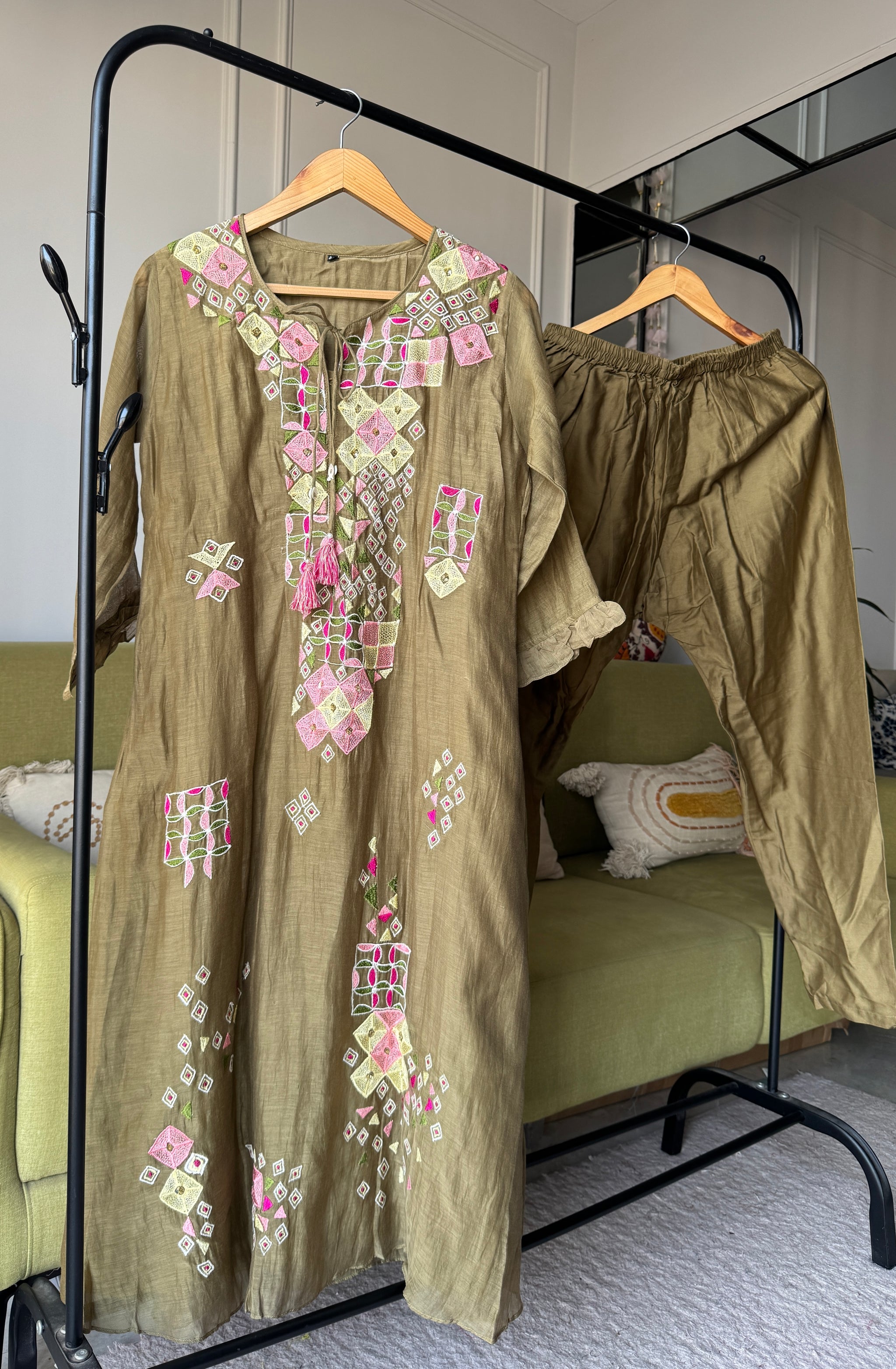 Milly Embroided Dress- Green