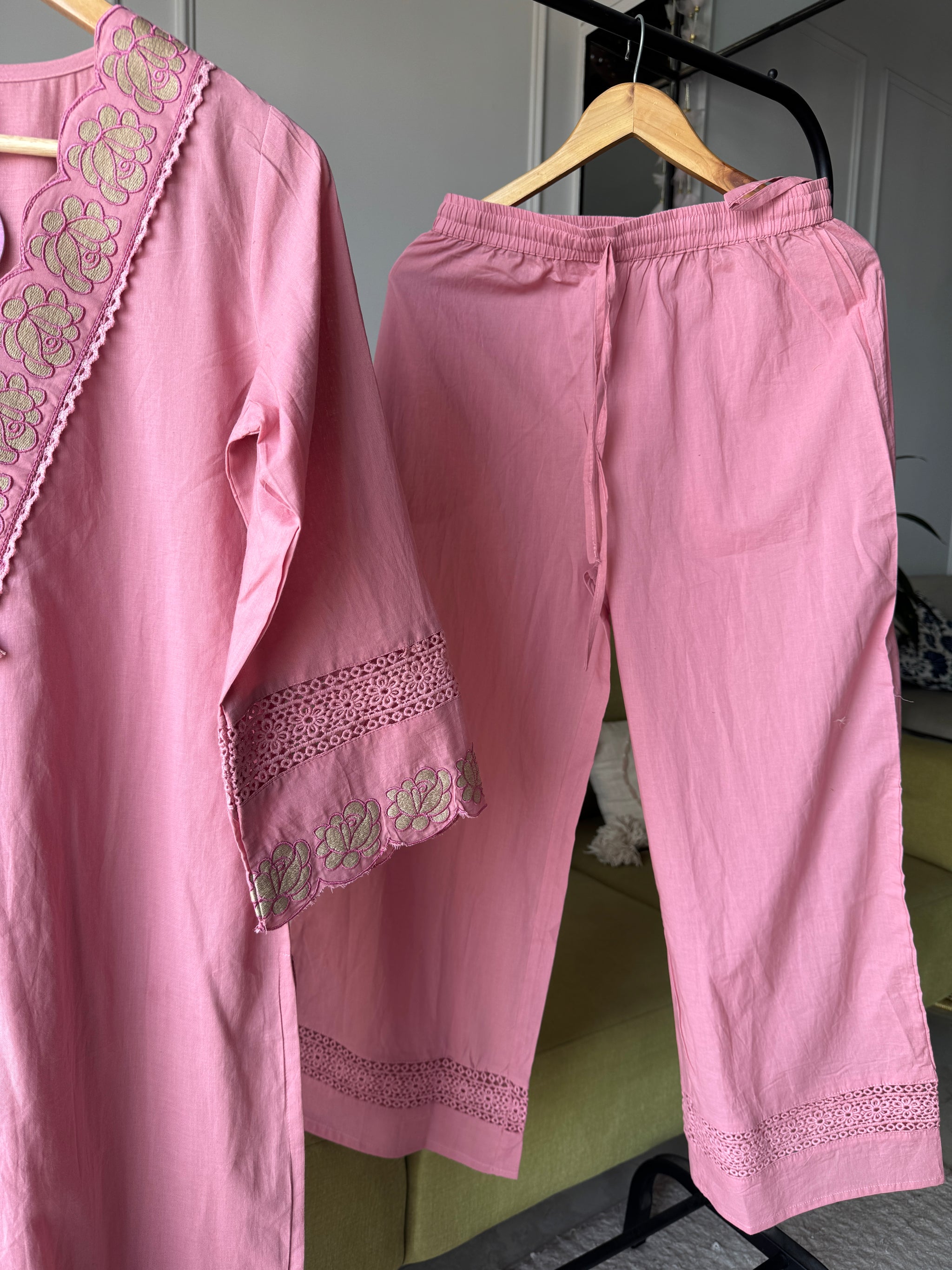 Soft pastel hues, timeless elegance .🌸This kurti set comes with matching pant & dupatta, designed to give you a graceful and effortless look.Perfect for everyday elegance and subtle festive vibes ✨