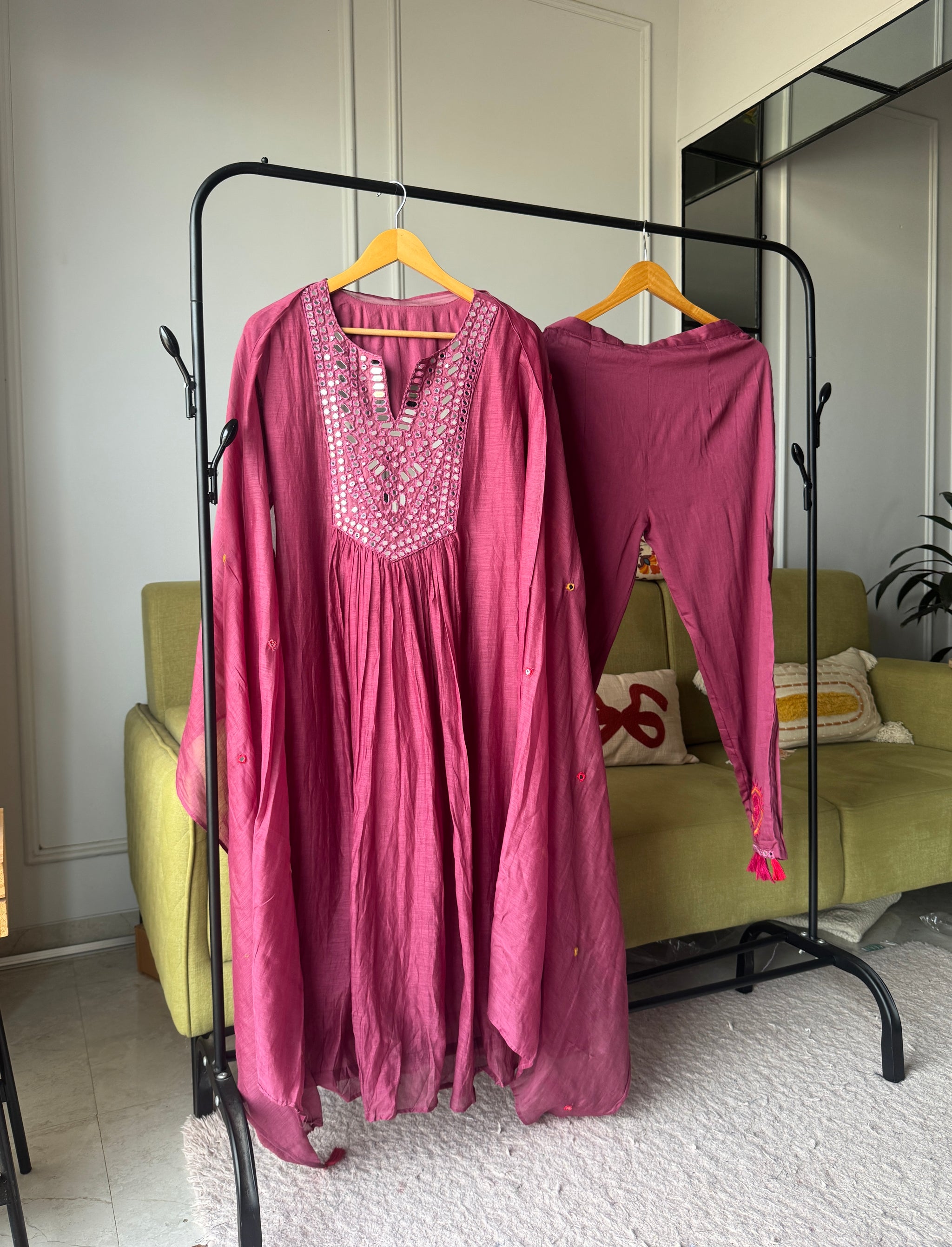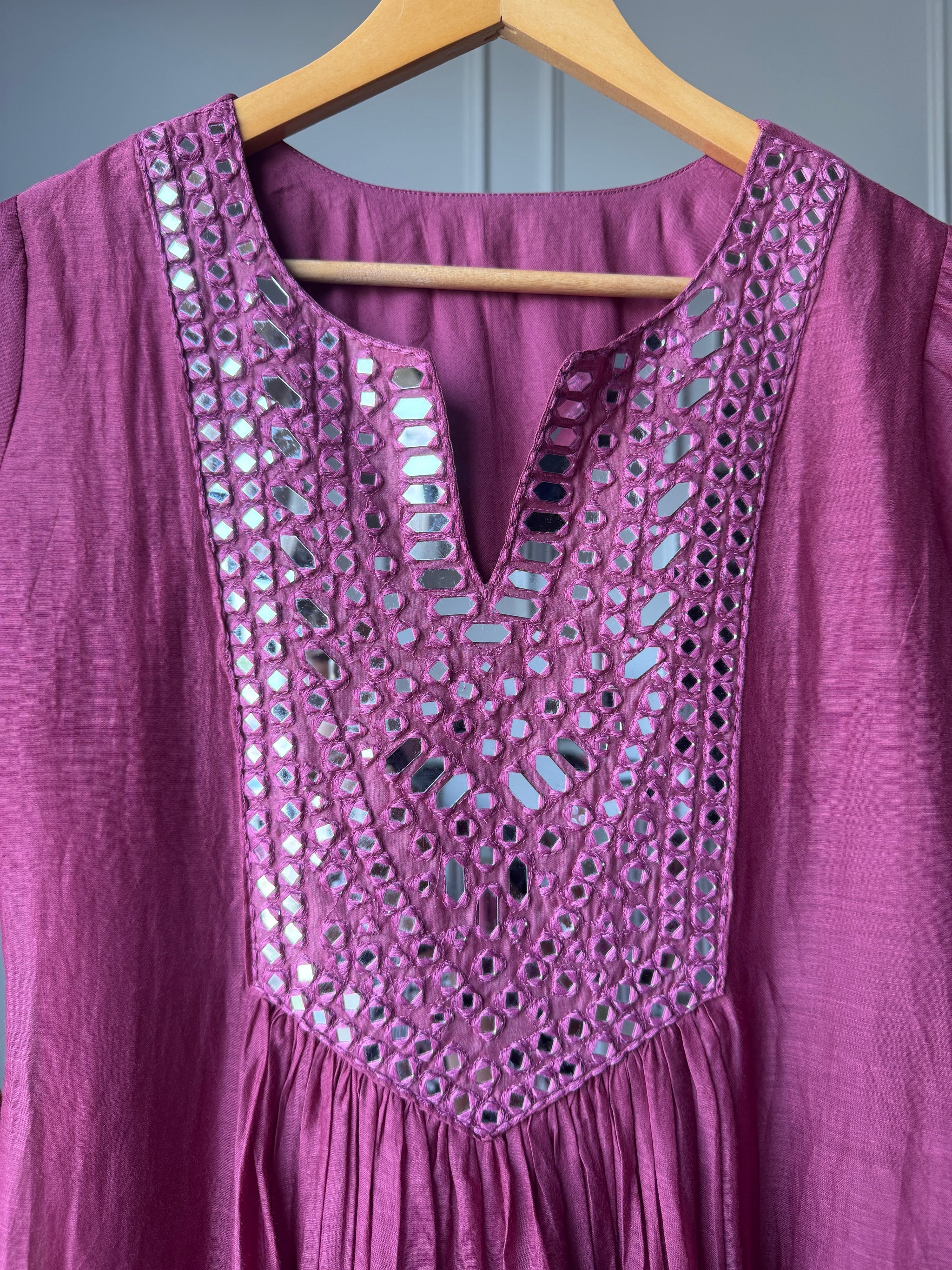 Naina Mirror Work Anarkali Dress- Wine