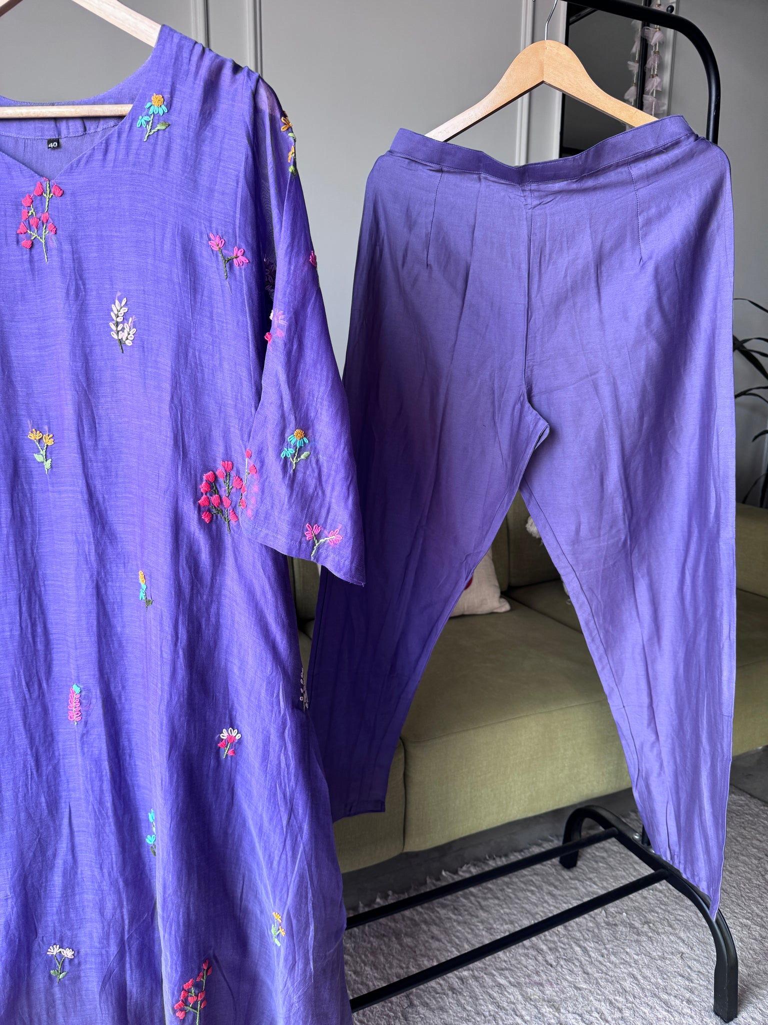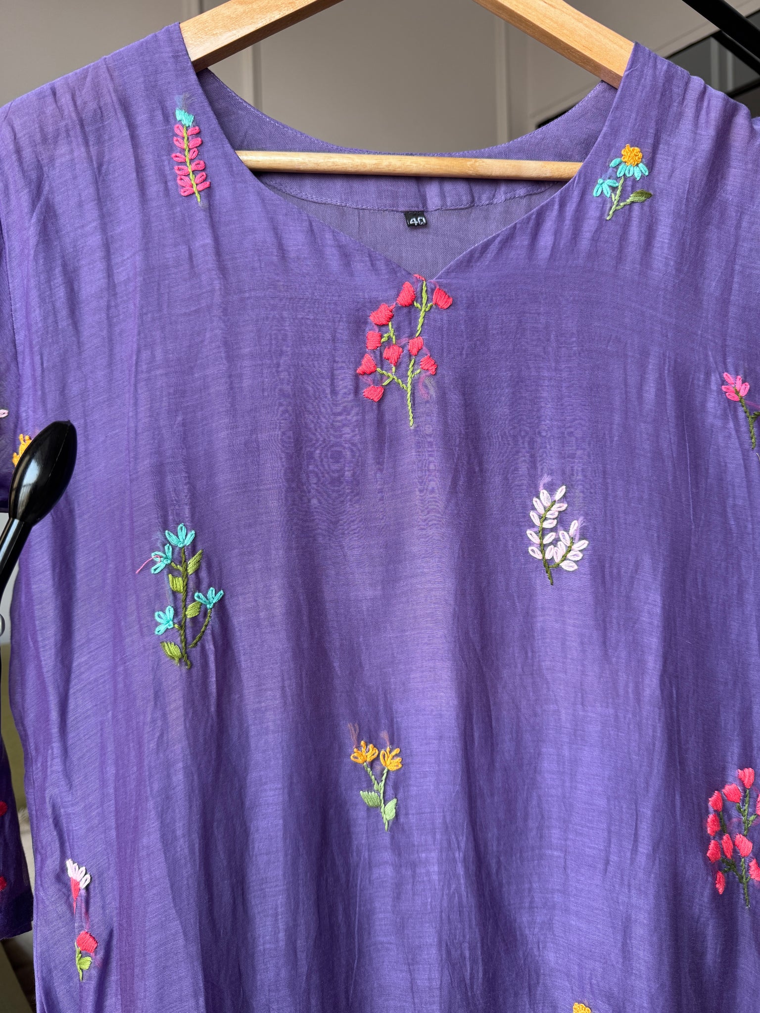 Siya Floral Embroided Mul Chanderi Dress- Lavender