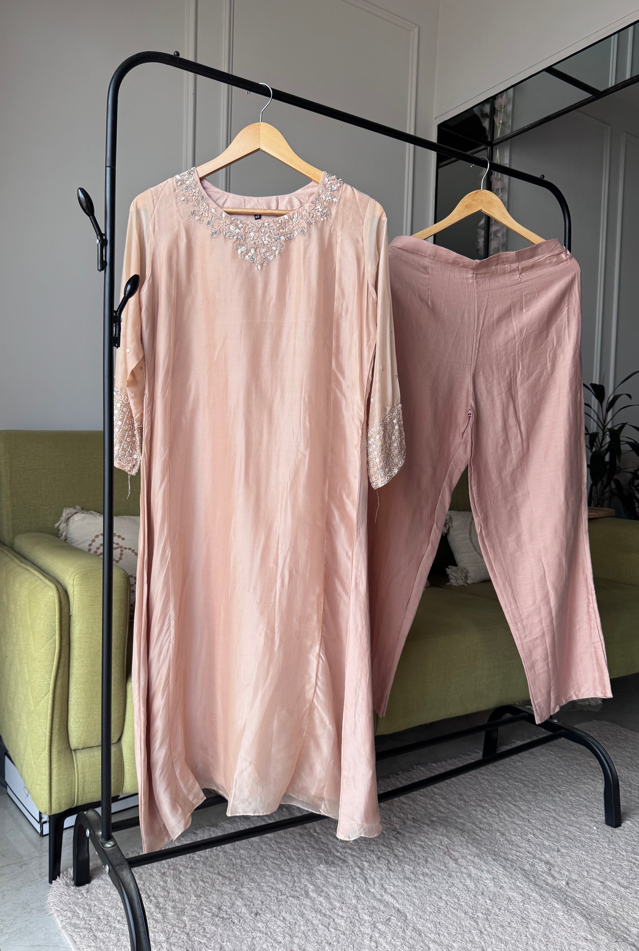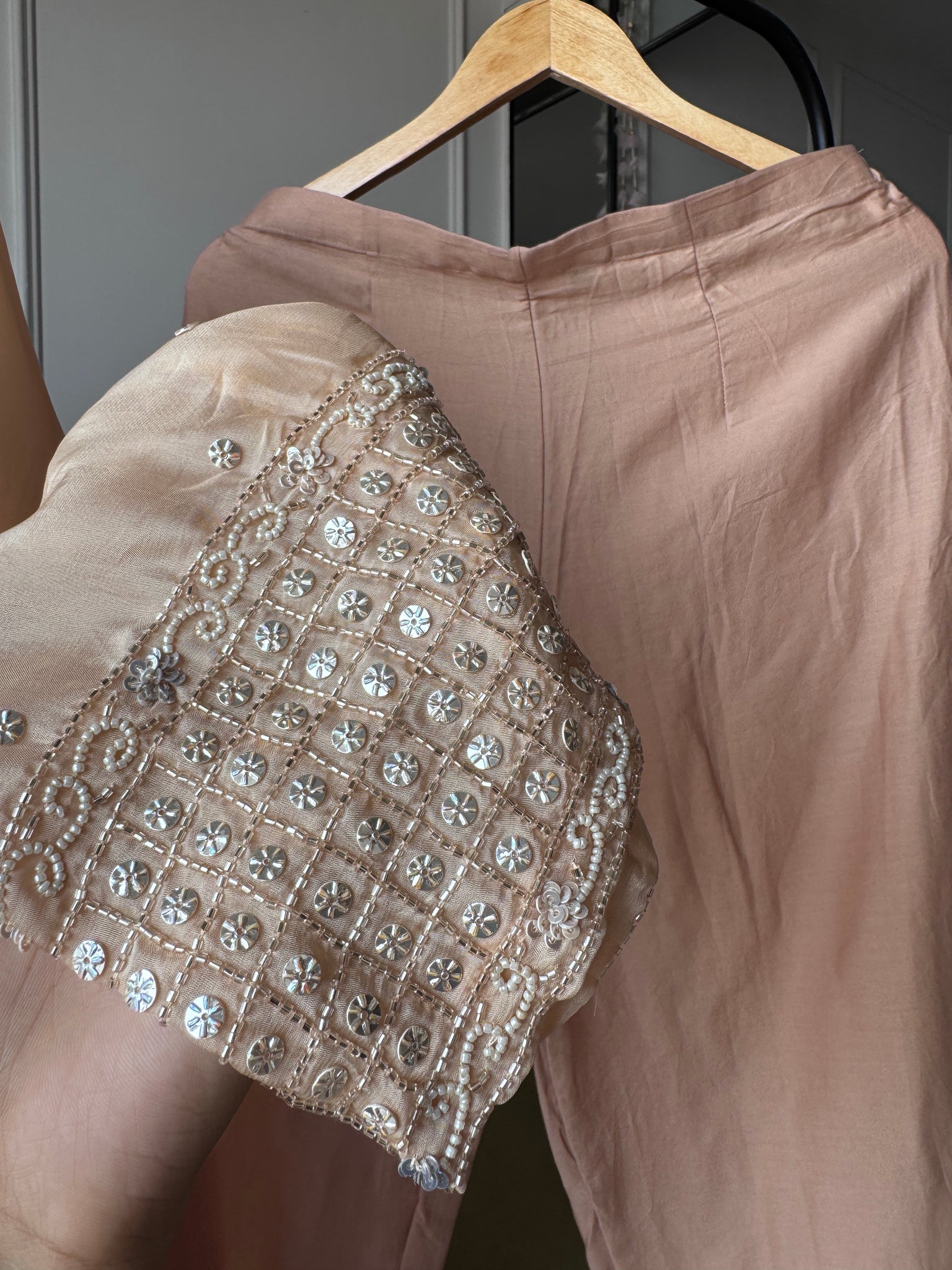 Sili Handwork Glass Tissue Dress- Peach