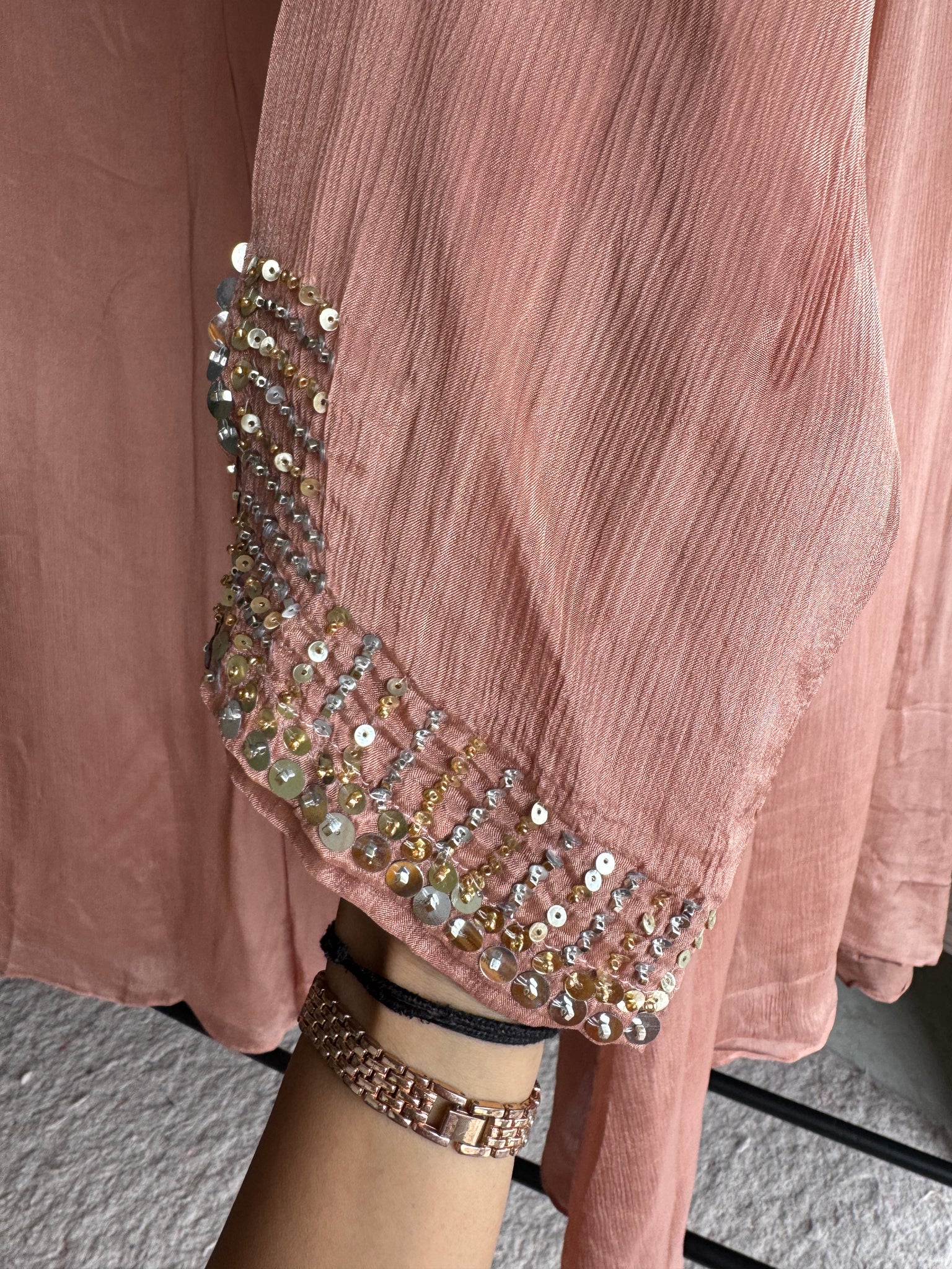 Ragini Chinon Squence Work Kurta With Flared Plazzo Pants