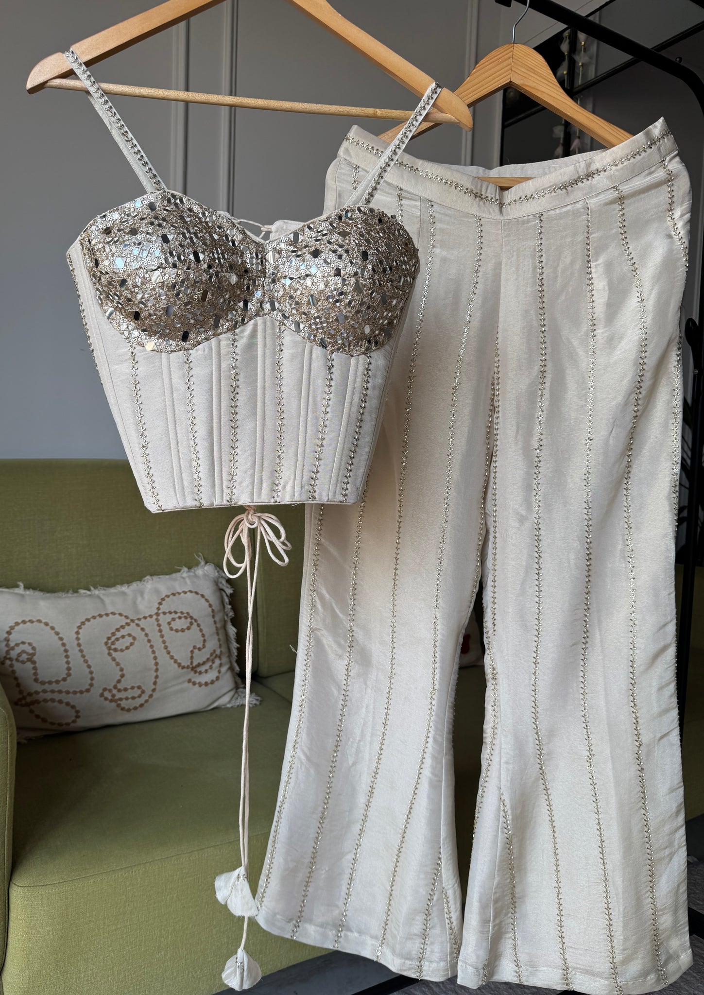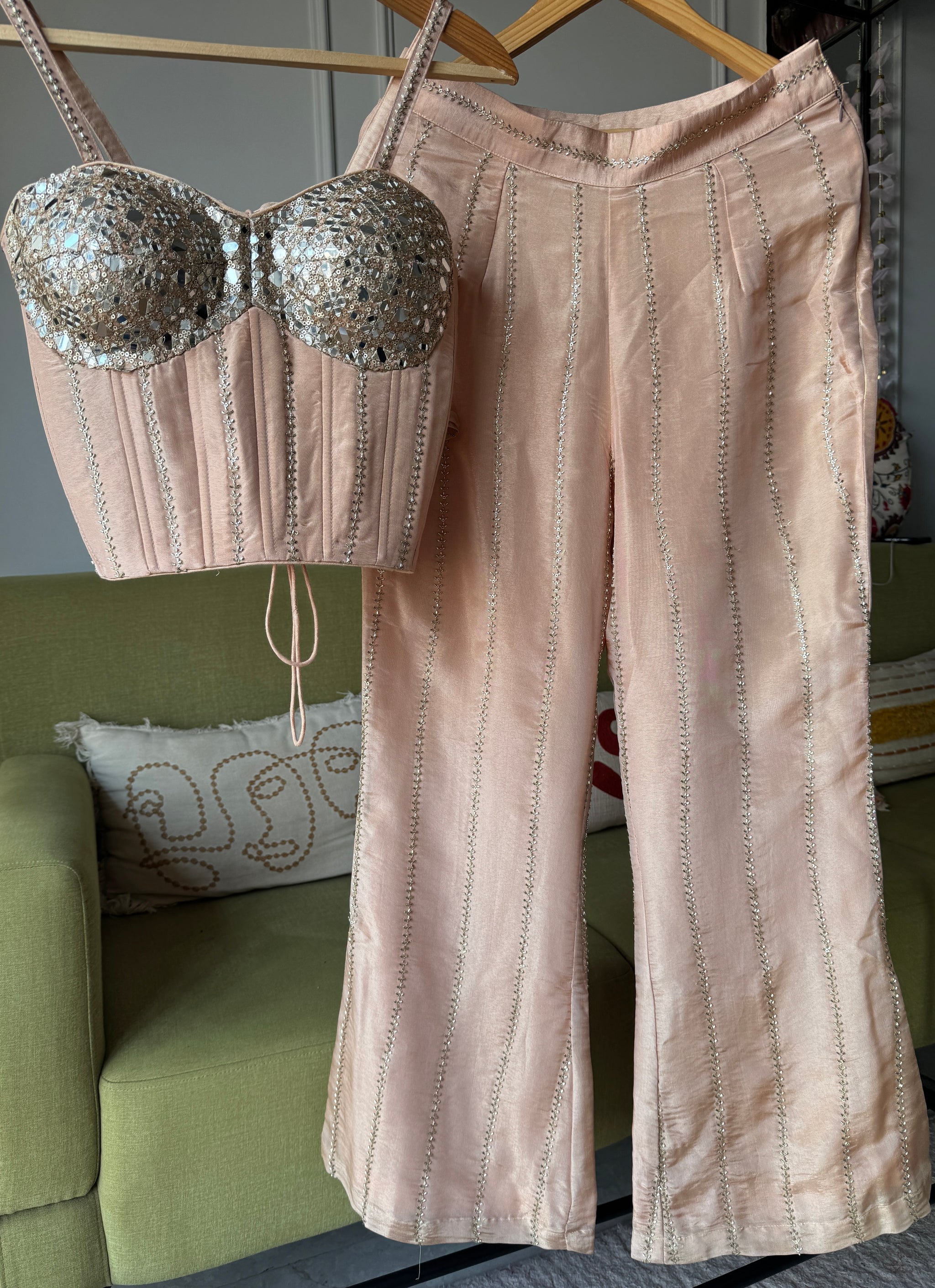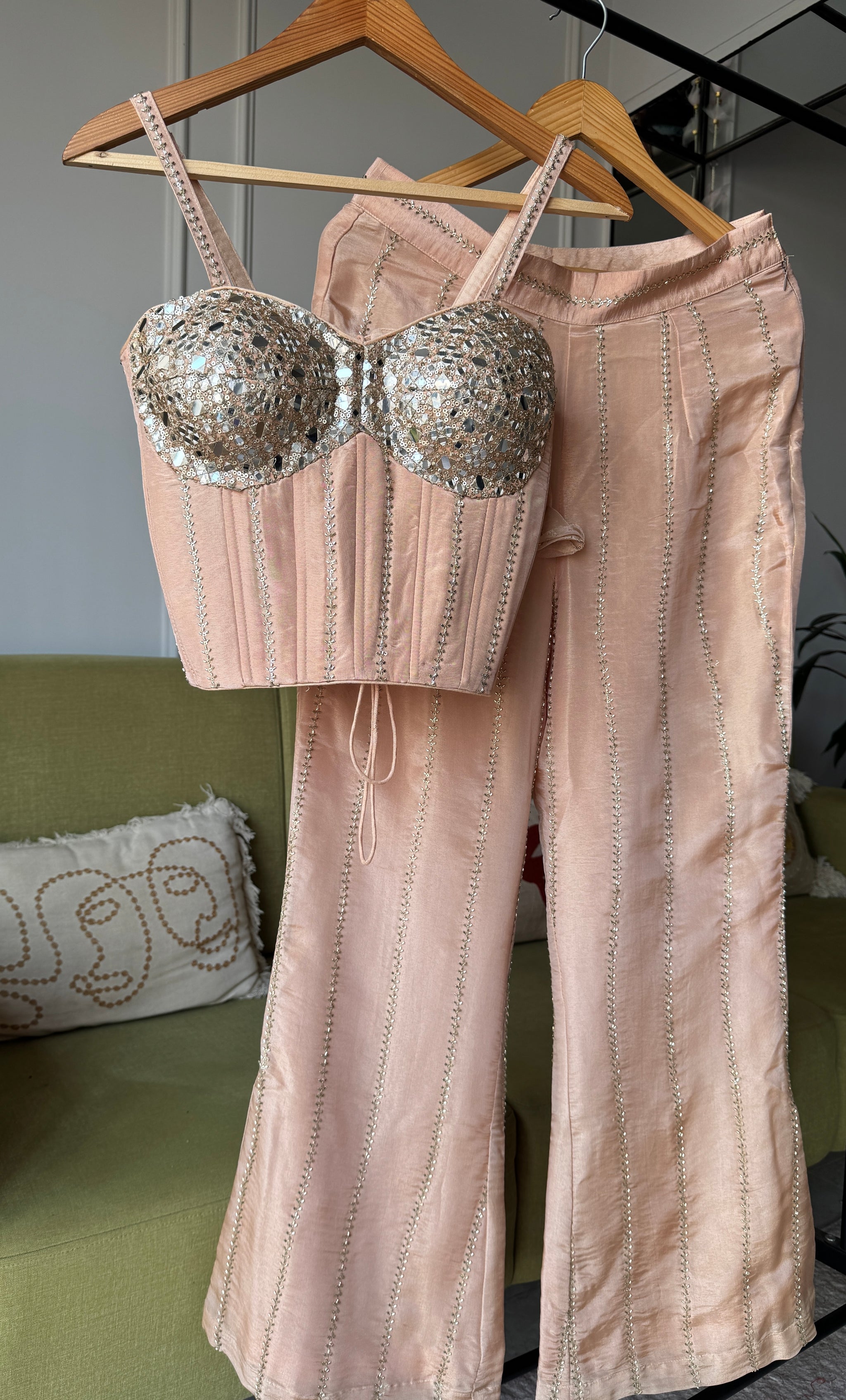 Dazzle Corset Top With Bell Bottoms Pants Full Handwork (Make to Order)