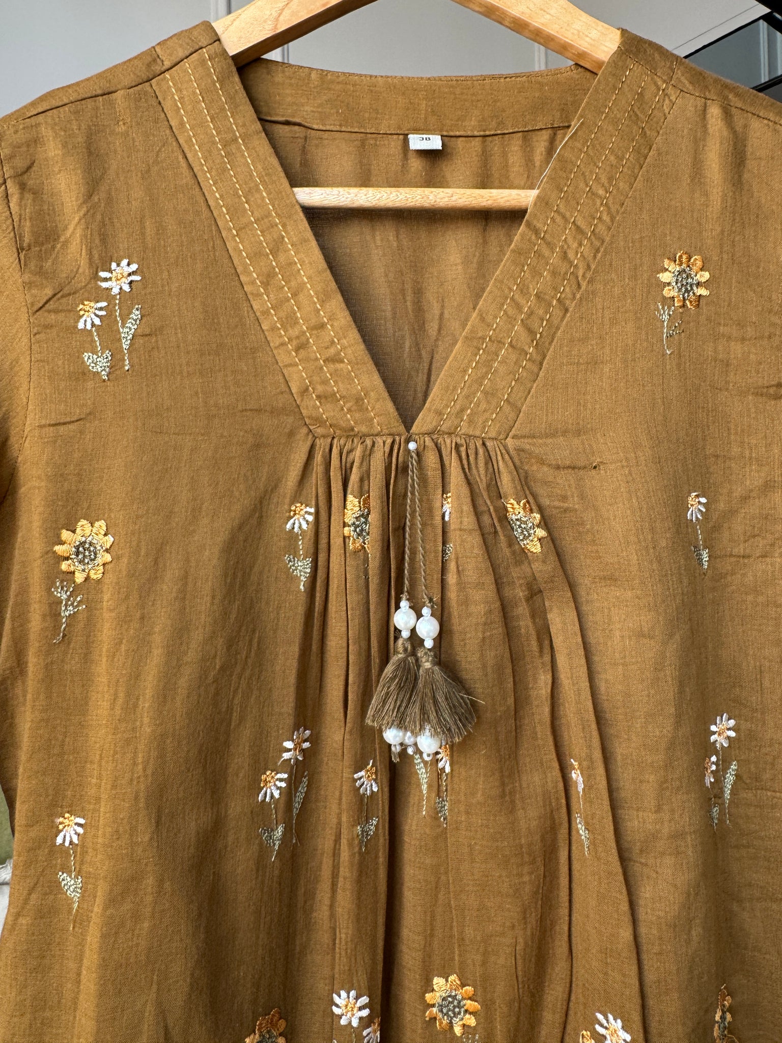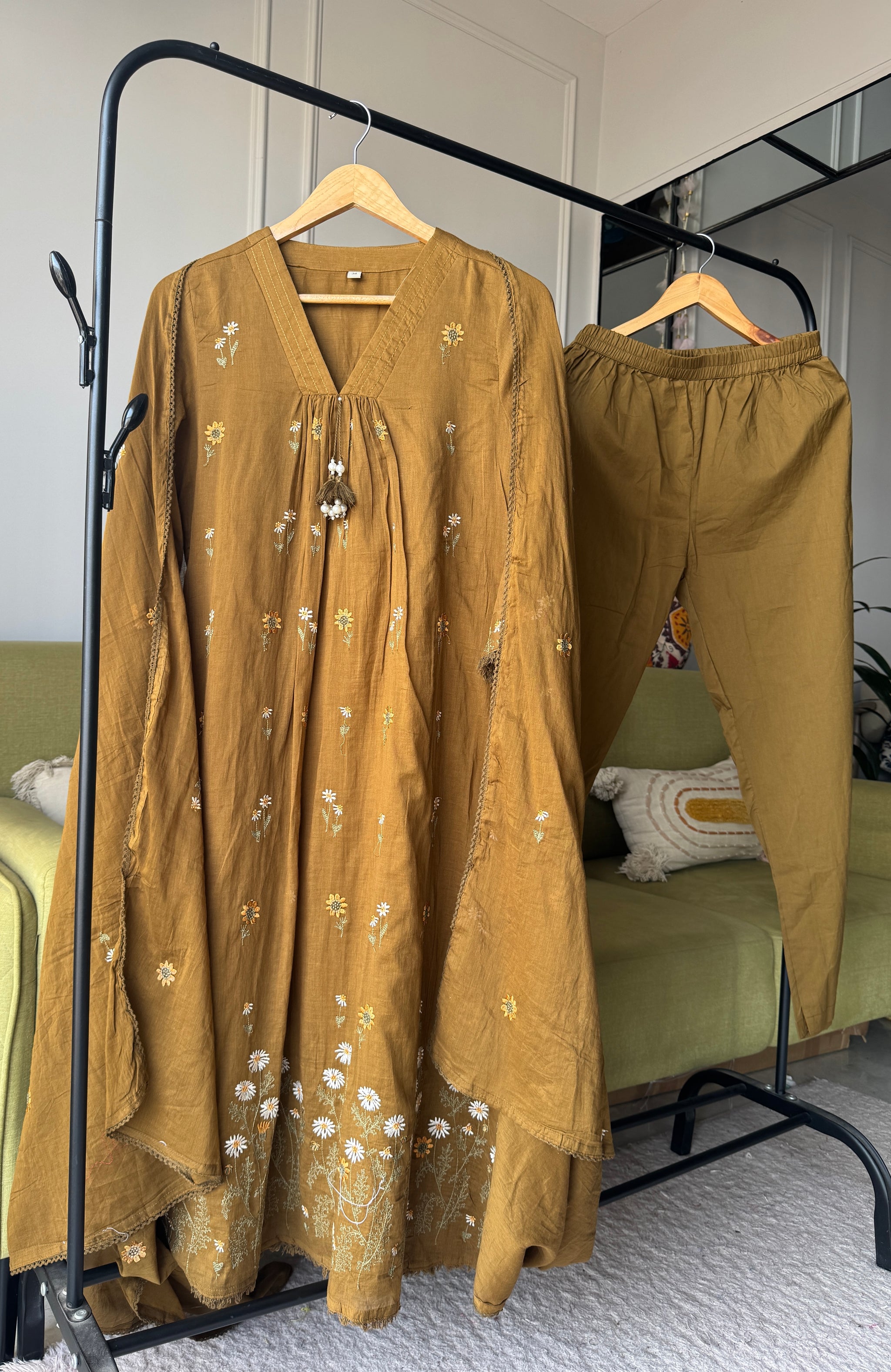 Leisha Embroided Aline Dress- Mehndi Green