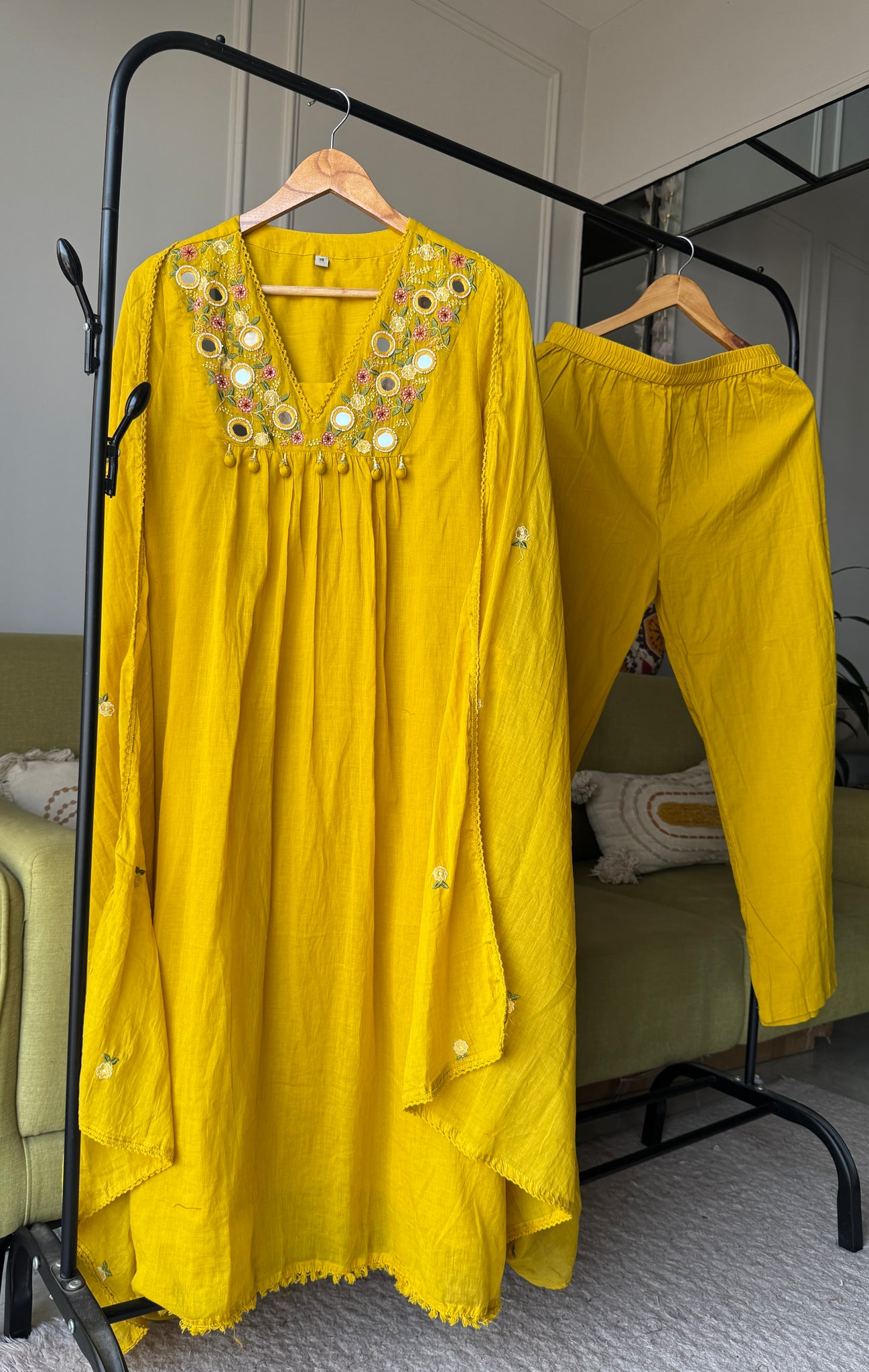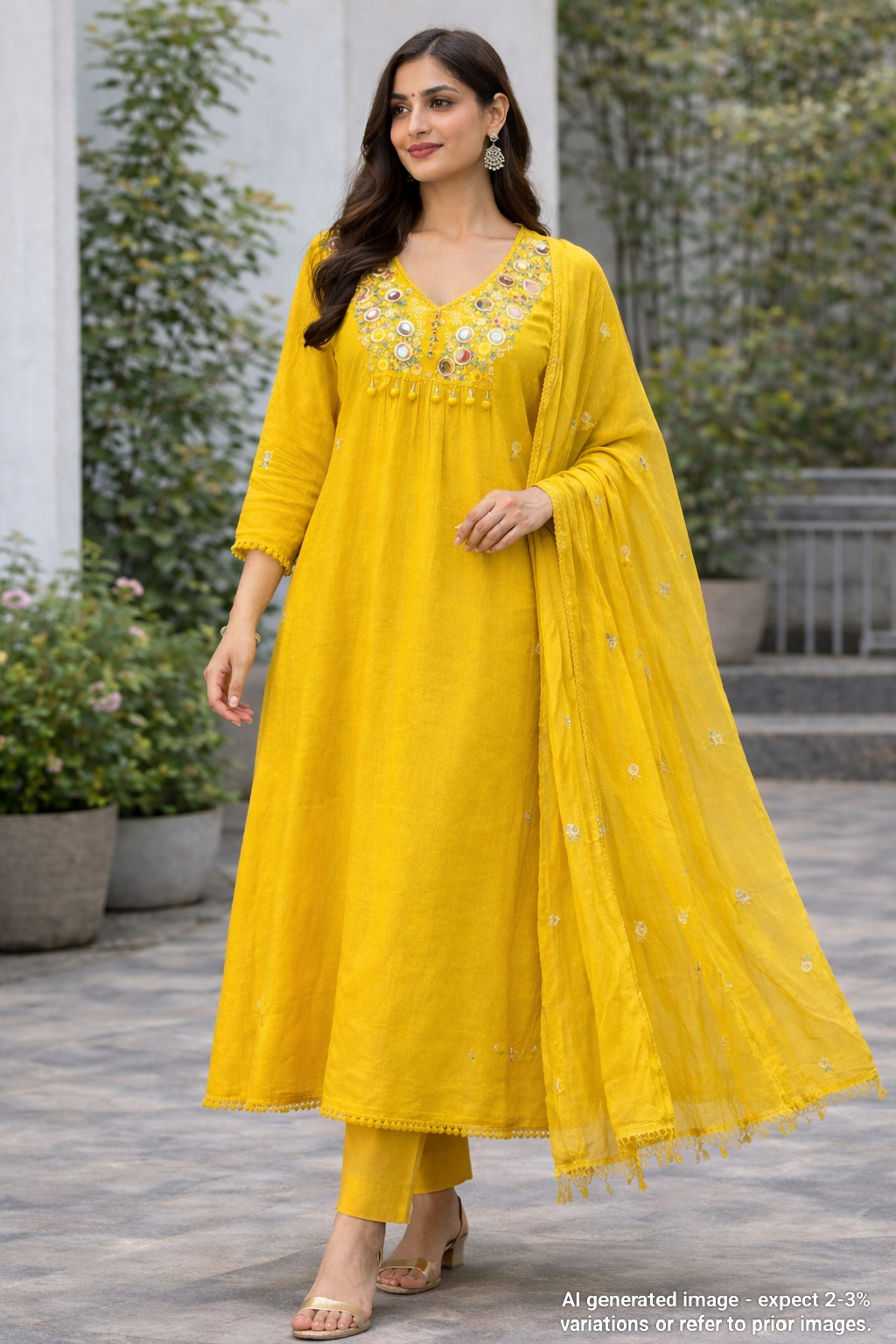 Radhika Embroided Mul Cotton Dress- Yellow