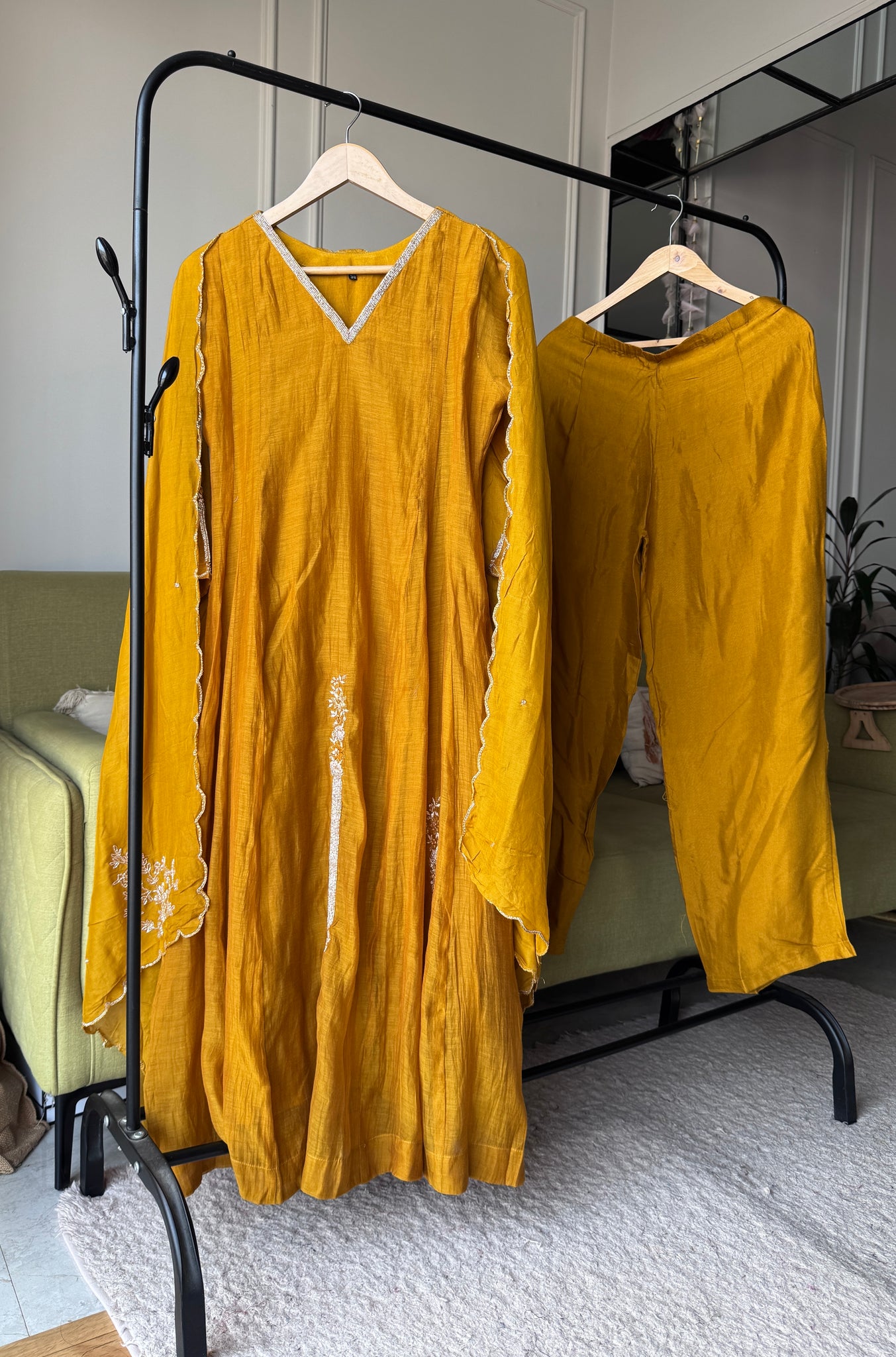 Naina Handwork Mul Chanderi Dress- Musturd