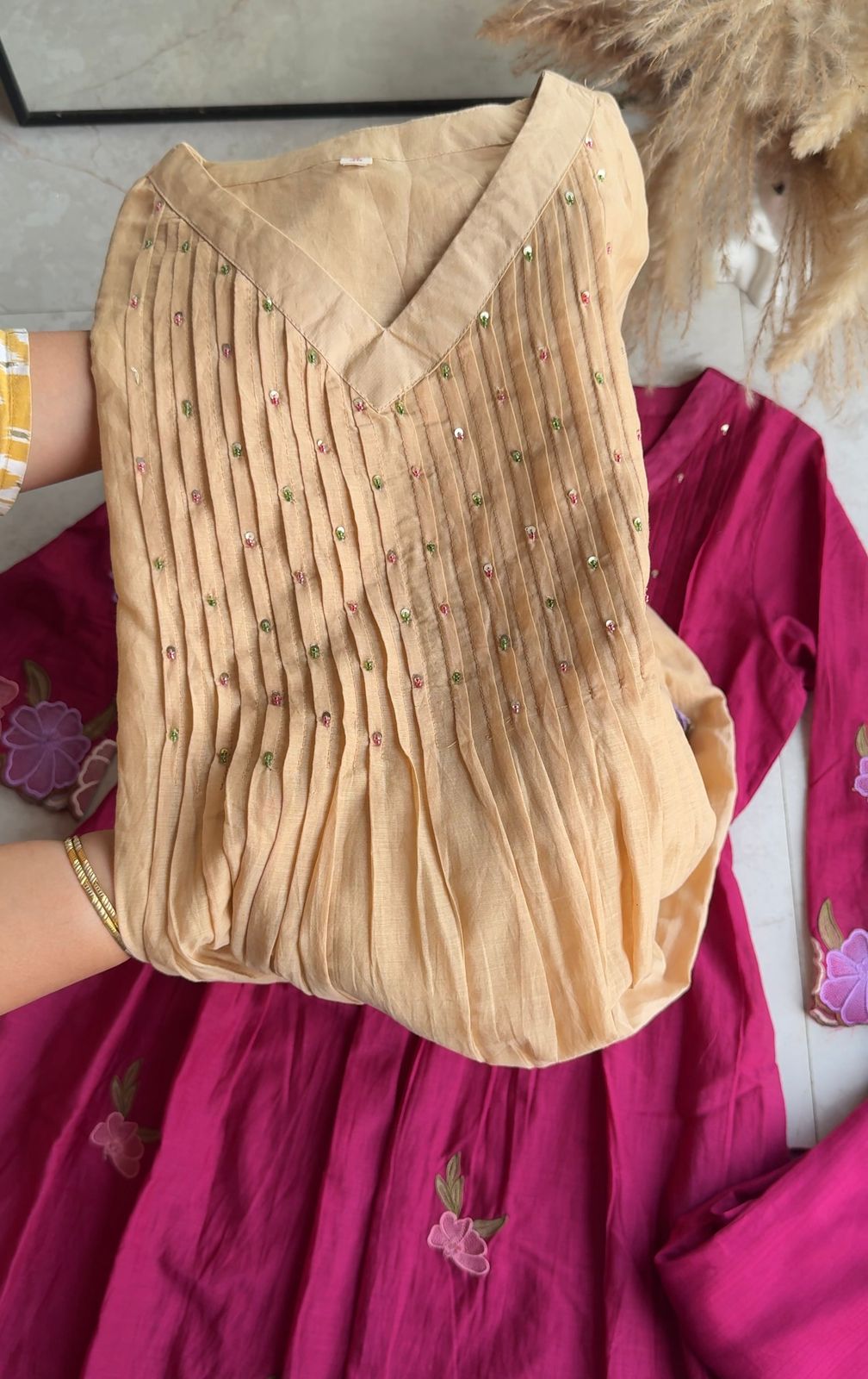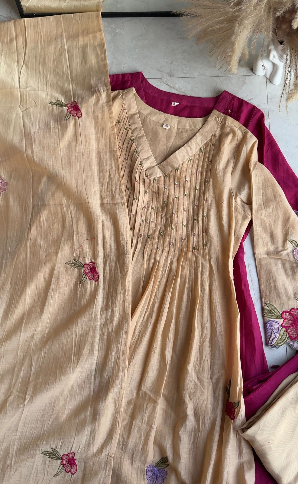 Priya Floral Patchwork Dress- Beige