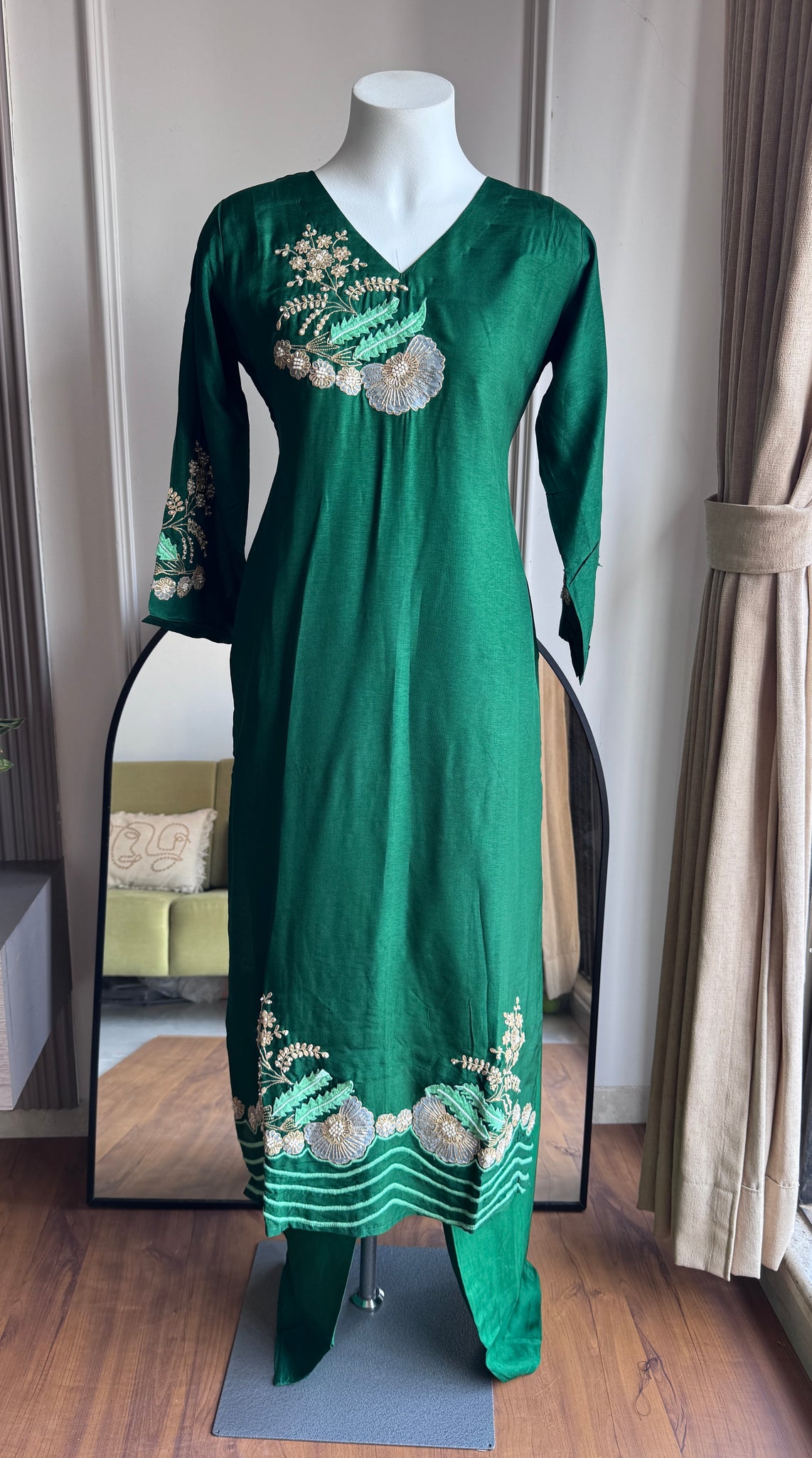 Purti Handwork Dress- Bottle Green