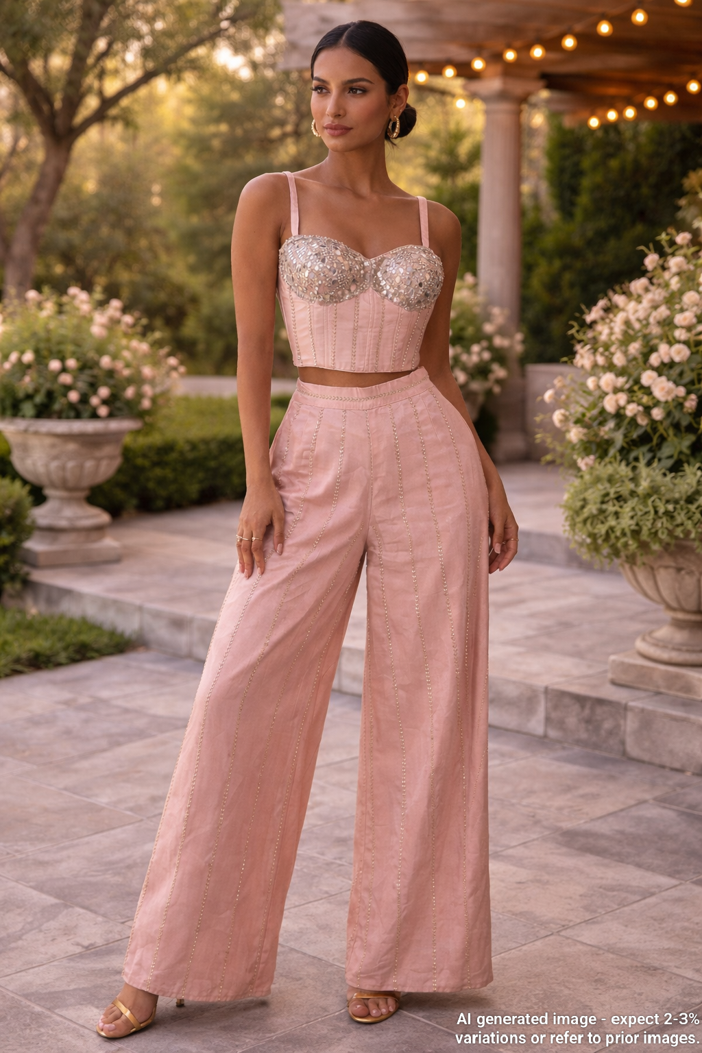 Dazzle Corset Top With Bell Bottoms Pants Full Handwork (Make to Order)