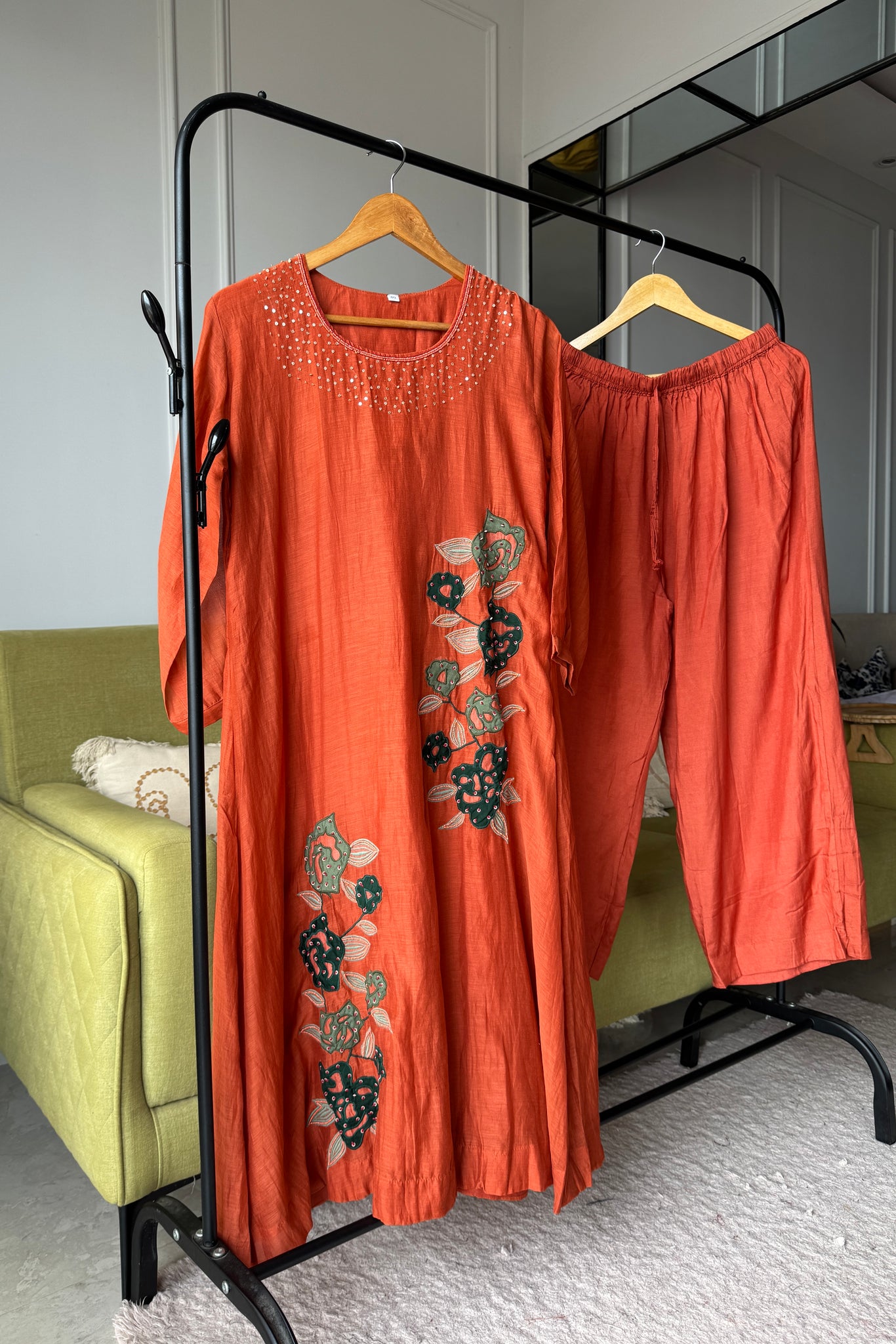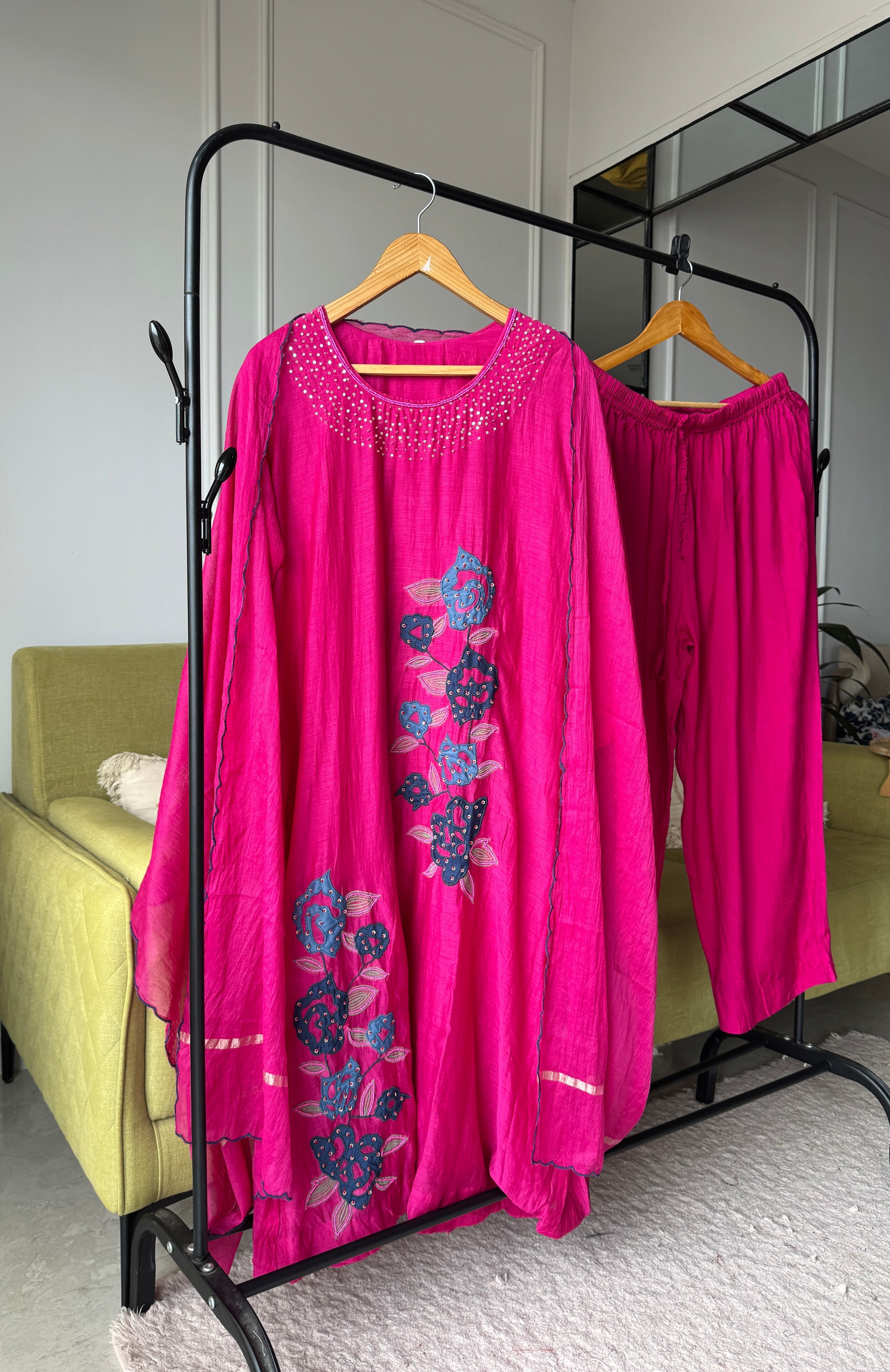 Rani mul chanderi kardana Aline dress with plazzo