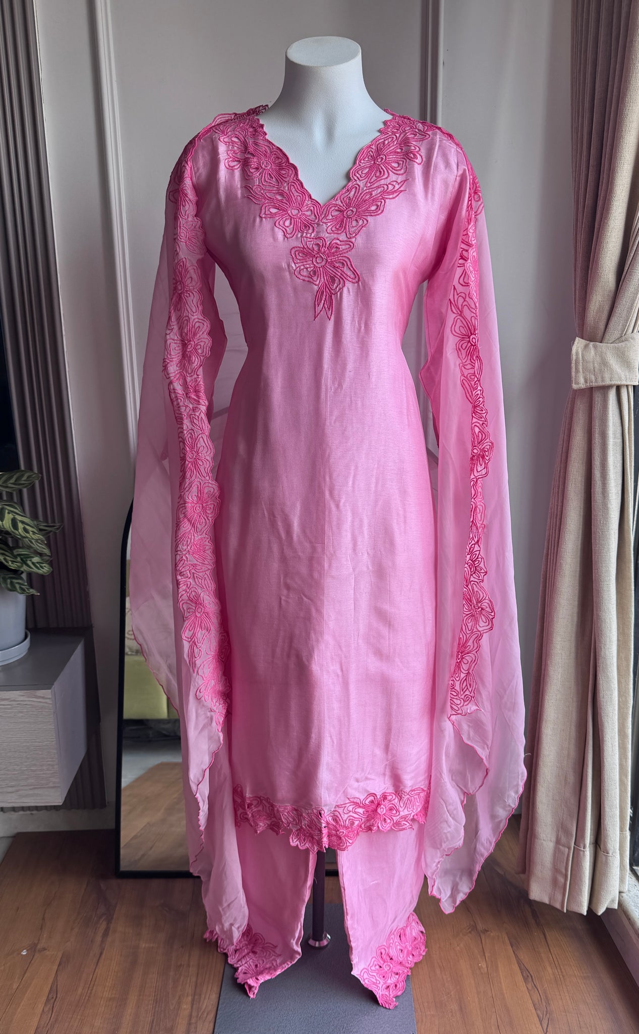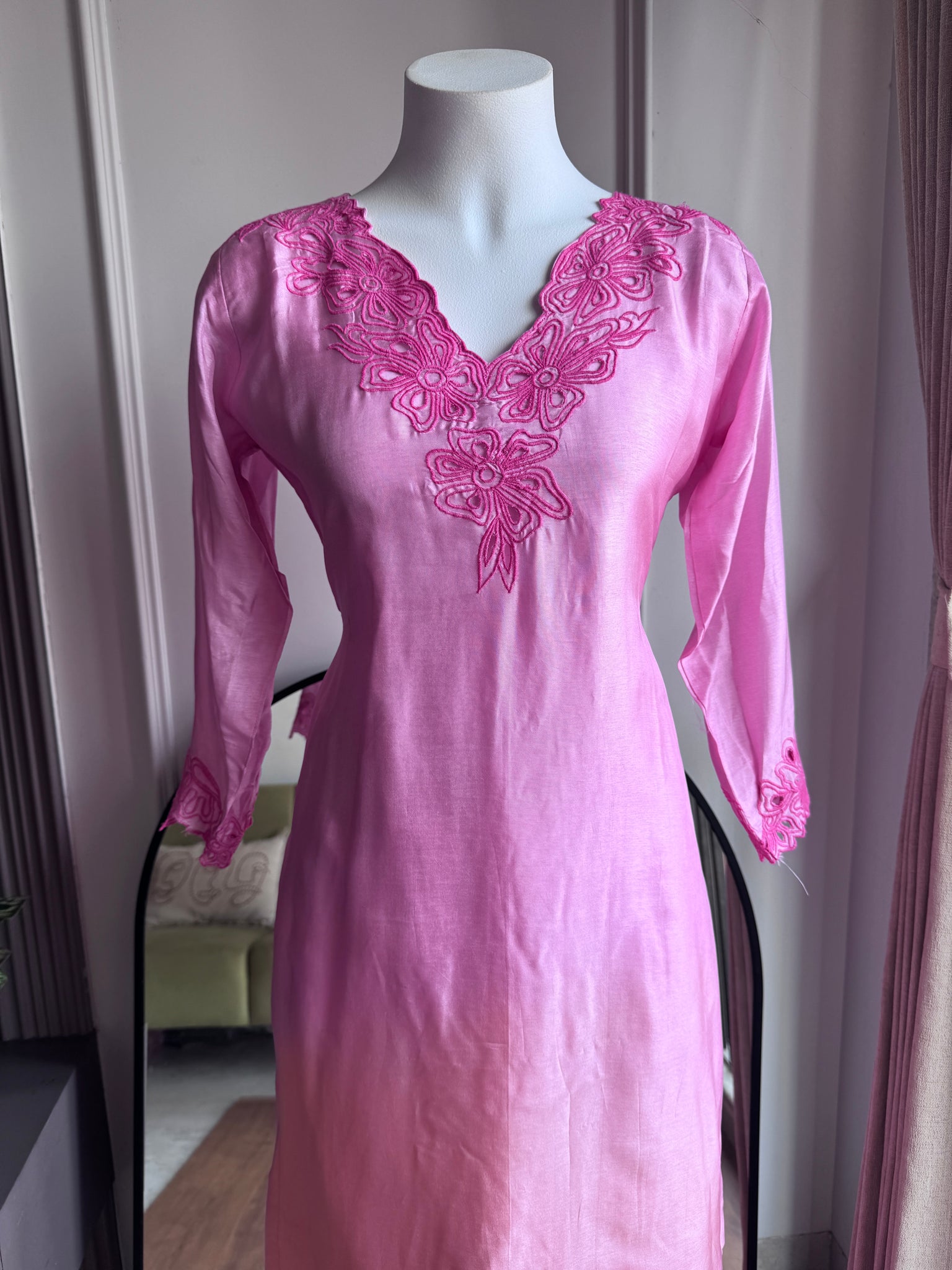 Krisha Cut Work Dress- Baby Pink