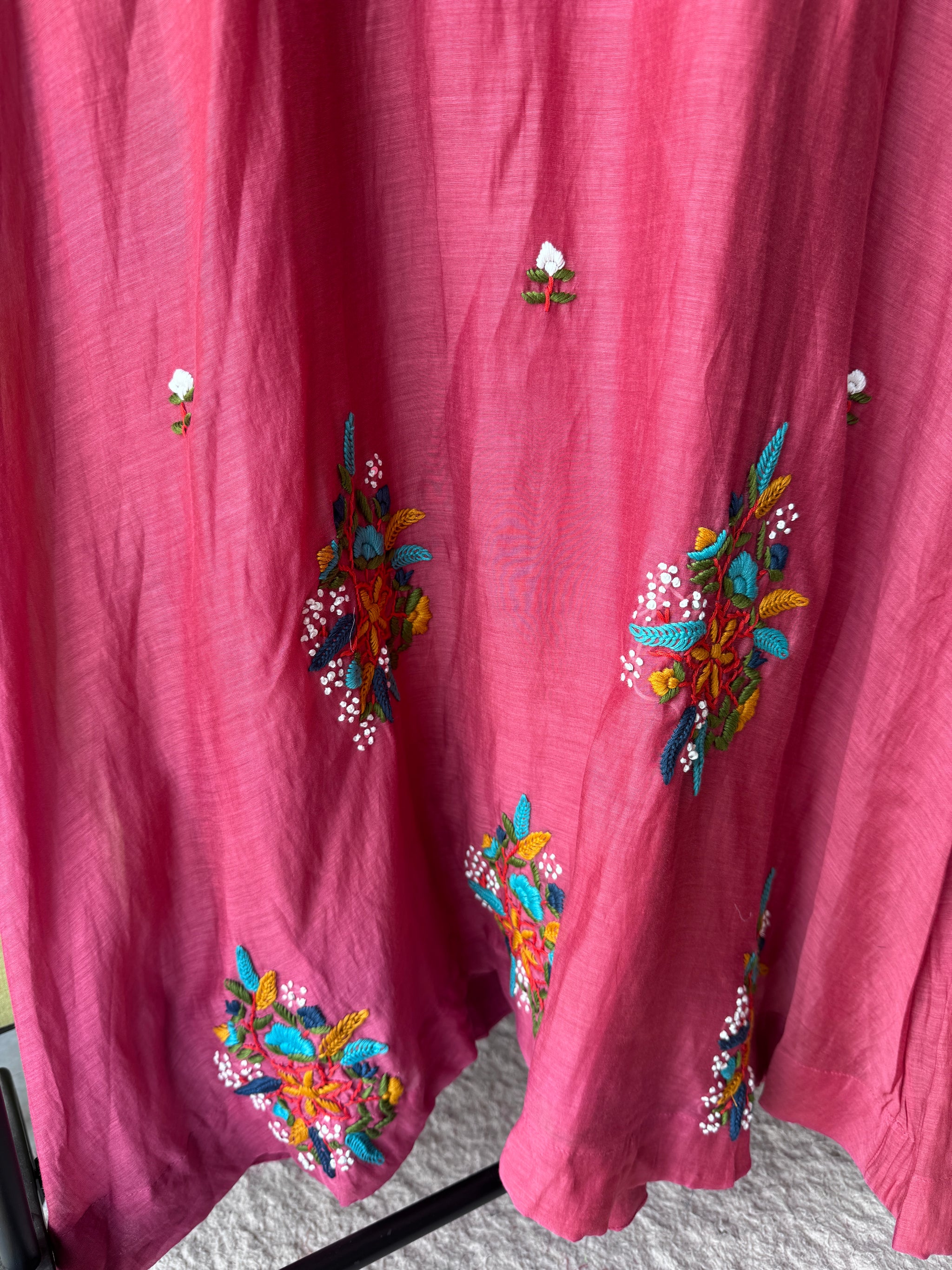 Parul Embroided Mul Chanderi Dress- Pink