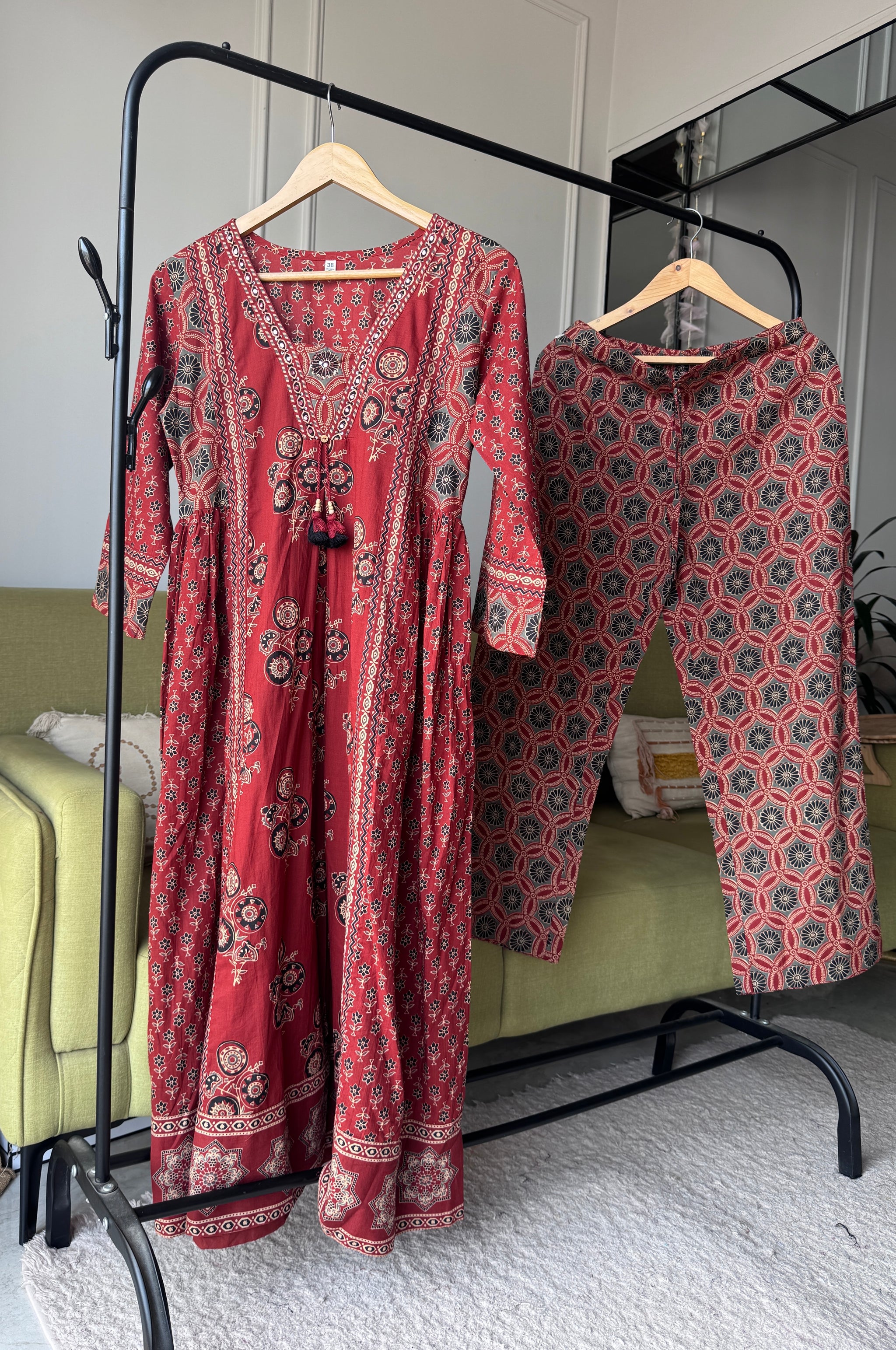 Presenting this beautiful rust red ethnic set — a perfect blend of traditional prints and modern comfort.